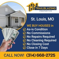 Trailblazing Properties is a locally owned and operated real estate company. We believe that everyone should have a hassle-free experience selling their home and we strive to provide that for all our clients. We purchase real estate in any condition and have the team and resources in place to improve the most distressed properties. Trailblazing Properties is a licensed real estate investment company that pays cash for properties and our team is here to assist you in the “As-Is” sale of your home. WE BUY HOUSES in ✔ As-is Condition ✔ No Commissions ✔ No Repairs Required ✔ No Cleaning Required ✔ No Closing Cost ✔ Close in 7 Days We Buy Houses in: St. Louis County, St. Louis City, St. Charles County, Jefferson County & more